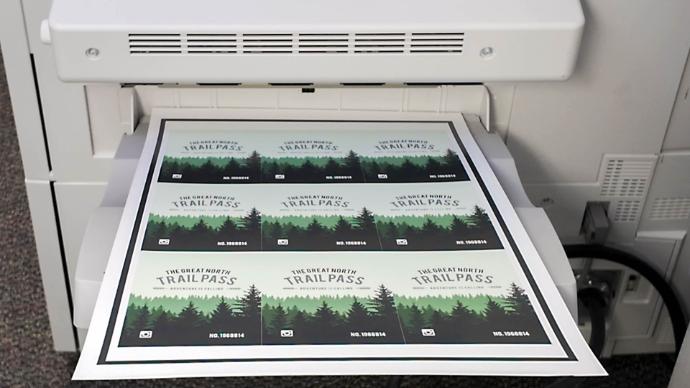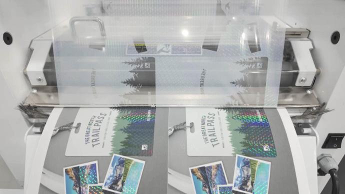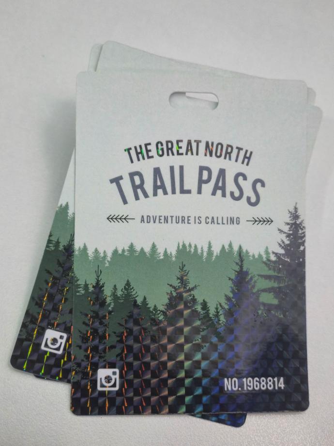 For example, we used a transfer holographic foil on this trail pass that would be used all summer. So durability was key.