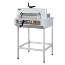 The FINISHpro Manual Guillotine is a quality, cost-effective solution for all light-production cutting needs. This manual ream guillotine, which has a cutting width of 18.7" and cutting depth of 19.1", is capable of cutting a full ream of paper at once. It features a wheel-driven paper clamp that allows for additional stack pressure and a cushion-ended, steel hand-lever for a smooth, even cutting action. The back gauge is easily positioned by using the front-mounted hand crank while a ruler located on the side gauge helps align the cut location. Safety is a key feature of the FINISHpro Manual Guillotine. Protective safety shields are located on the front and rear table and a safety lock ensures the blade cannot be lowered if the front cover is in the open position. It comes complete with a resharpenable blade, a cutting stick, and the stand. Our affordable FINISHpro Manual Guillotine is ideal for small print shops, schools and copy shops.